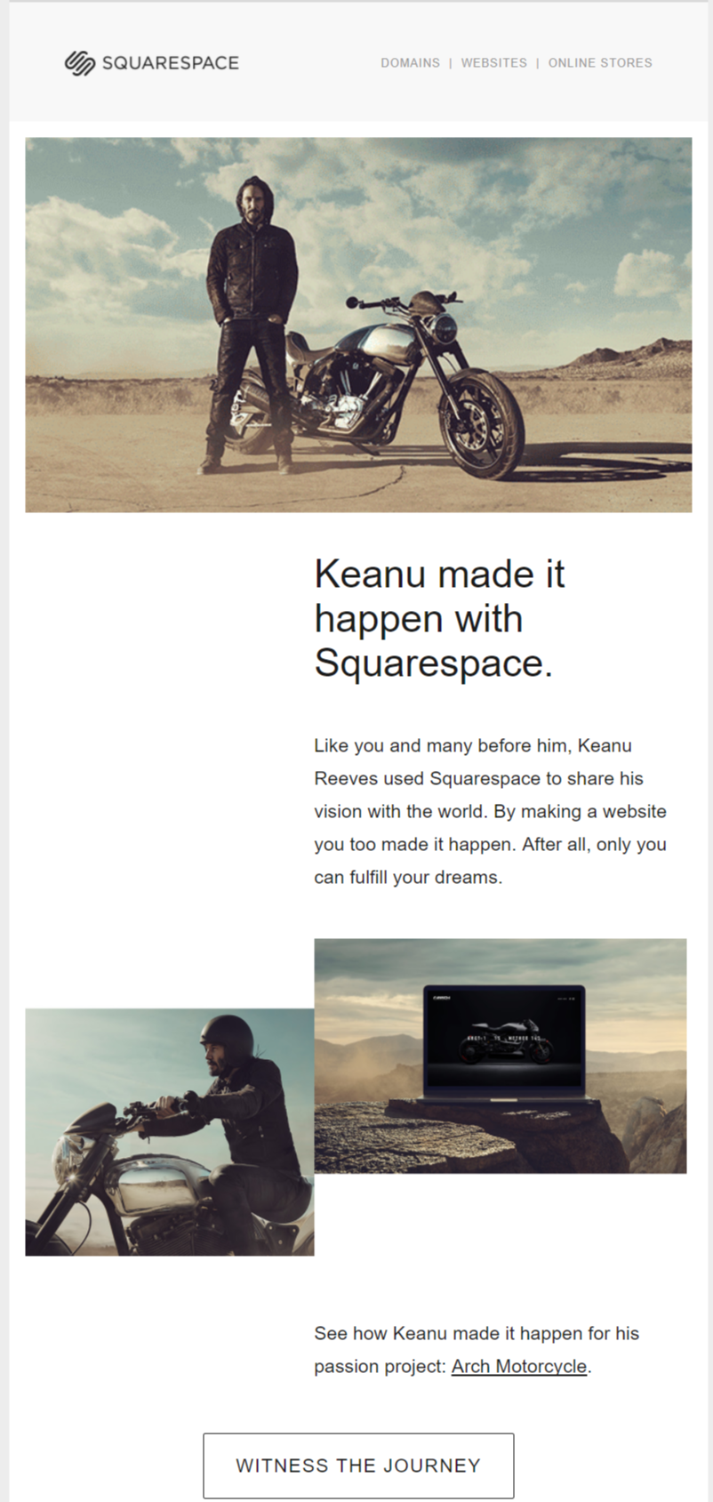 Democratized design, the make-it-yourself ethos, and turning small ideas into big swings are all hallmarks of the Squarespace brand. The voice toes the narrow line between unbridled ambition and pragmatism. They champion the beginners, empower the professionals, and create a better web for everybody.