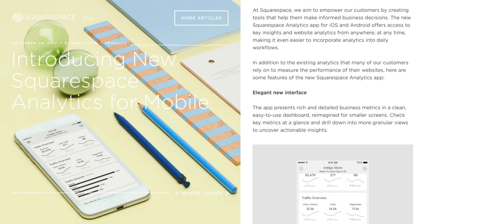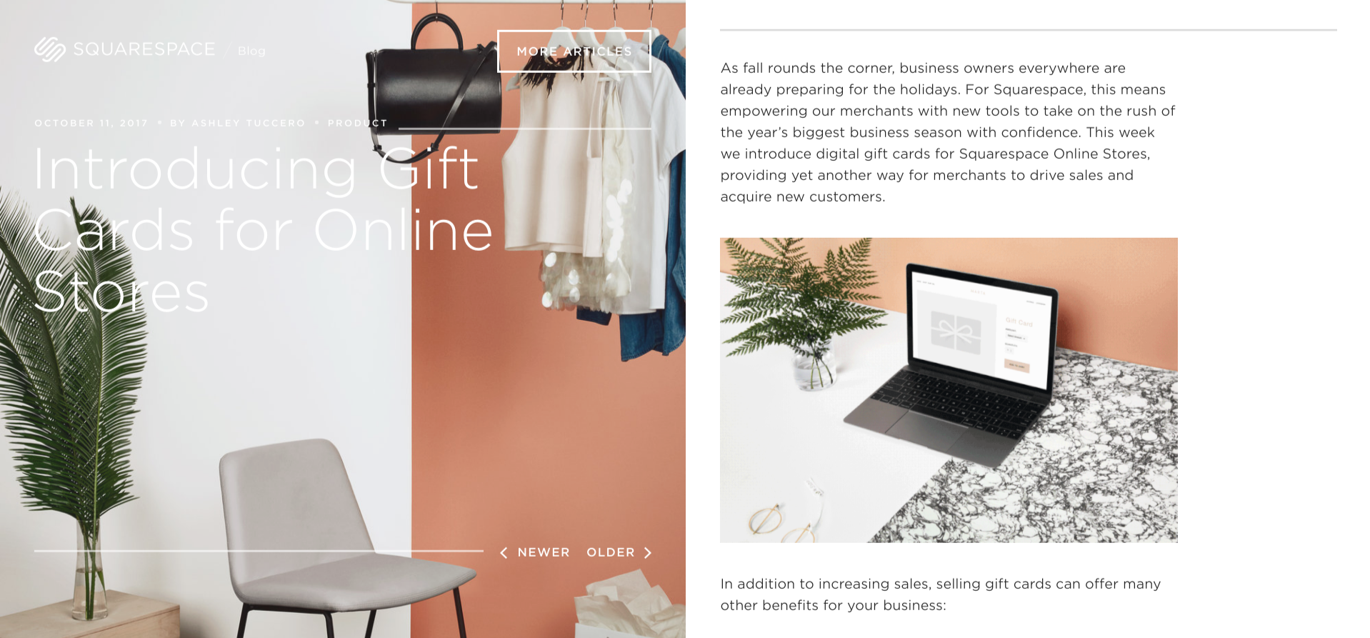 Squarespace has become synonymous with beautiful websites. Your favorite Michelin-starred restaurant? on Squarespace. The boutique gym across from the boutique hotel? Both on Squarespace. Award-winning design combines with a foolproof user experience to create a peerless product that gracefully keeps pace with the needs of its members.